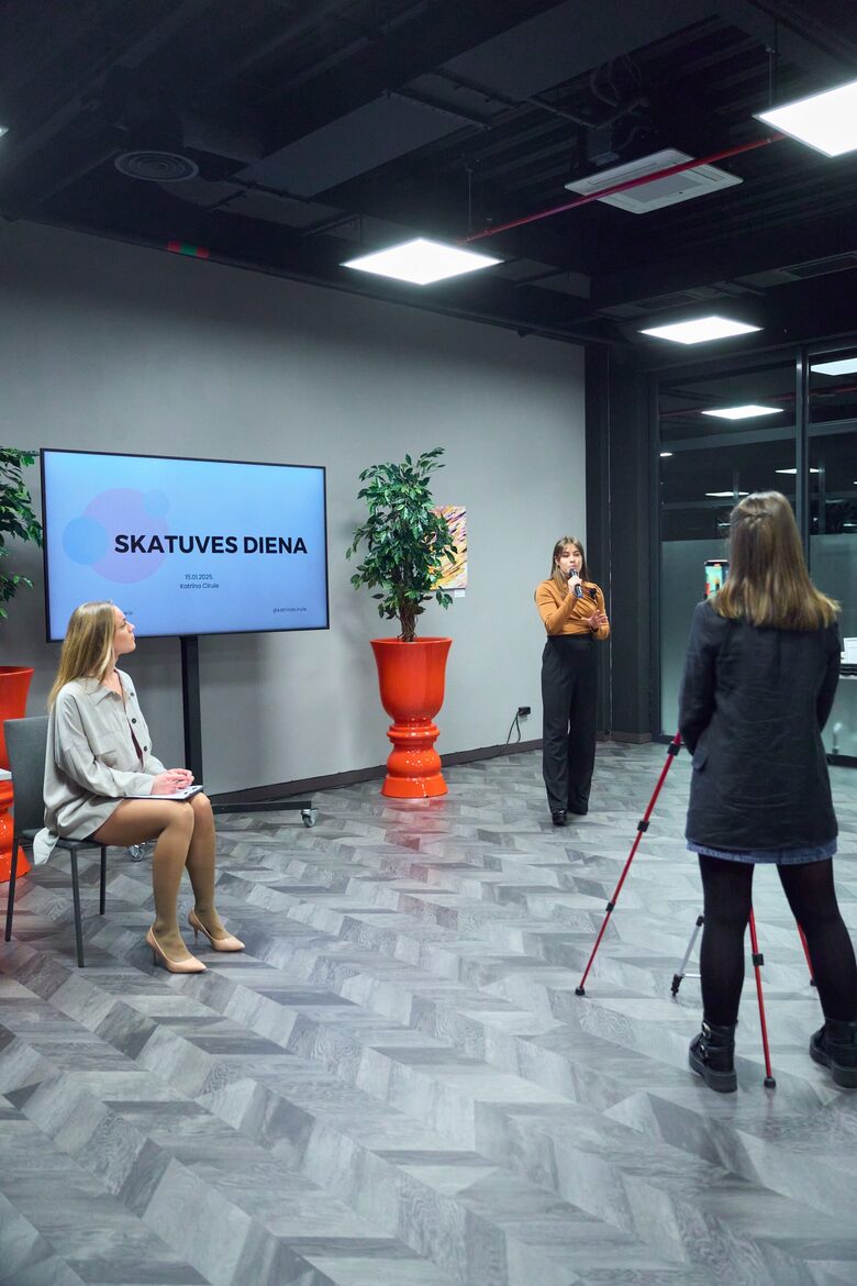 - Scenārija izveide rakstiski, runas treniņš audio & video, tehnikas pārliecinošai mijiedarbībai ar publiku un prakse